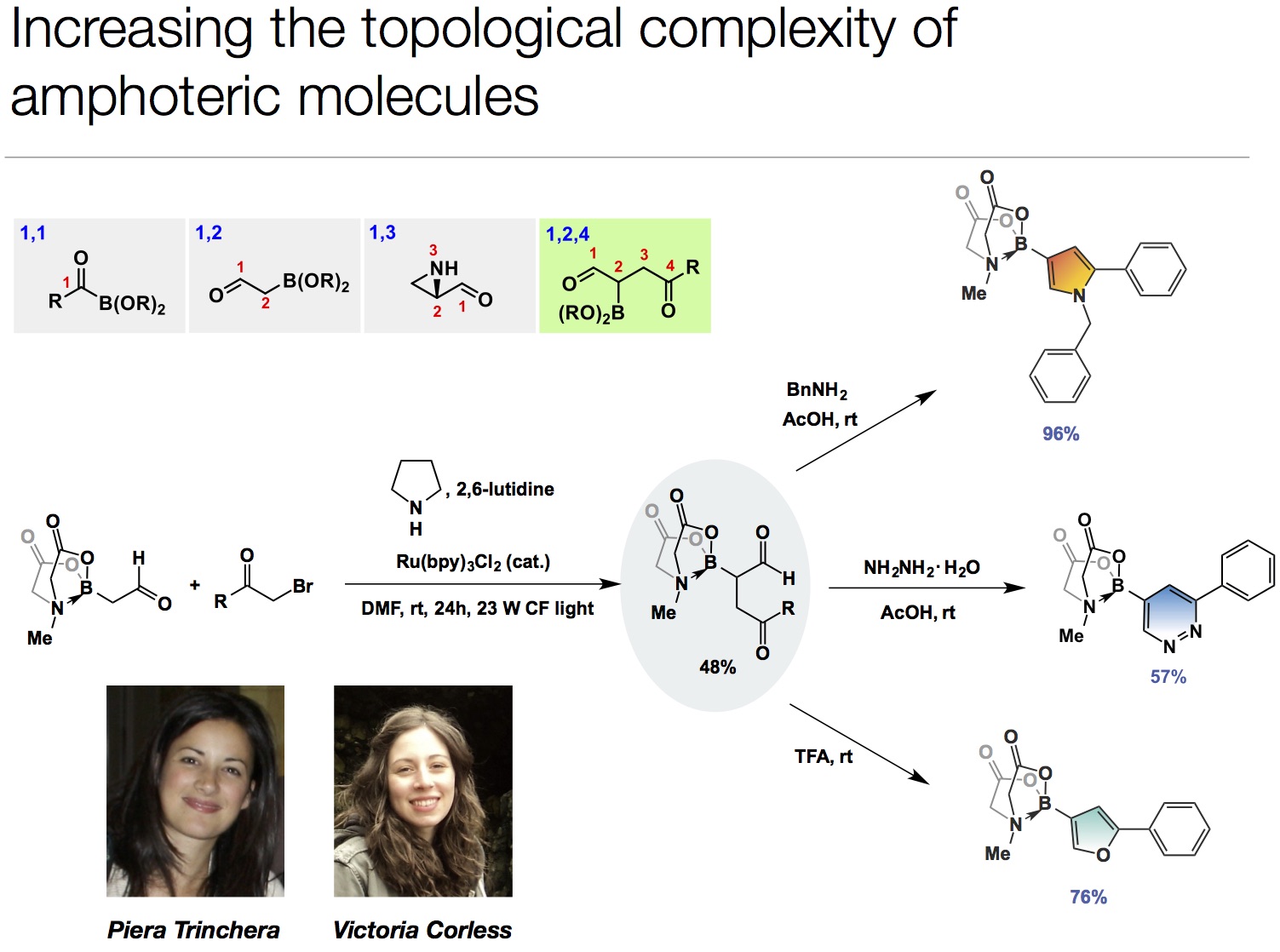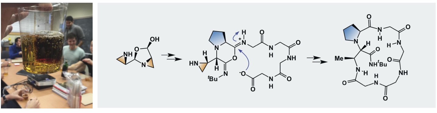 This aggressive approach not only resulted in the synthesis of (–)-Maoecrystal V, but also allowed us to gain access to the unnatural enantiomer of the molecule. Both enantiomers as well as the advanced synthetic intermediates leading to their formation were sent for biological studies against different tumour cell lines. Although the details of the complete synthetic study of (–)-Maoecrystal V will be released sometime in the future, I would like to admit that this project was an emotional rollercoaster, especially for my colleagues Changwu and Kiel. We owe a debt of gratitude to Kiel for his PhD-long synthetic investigations that have ultimately resulted in the undertaking of this particular route. In our group pressures to develop short practical total syntheses continue to uncover new reactivity and serve as an inspiration for the development of new methodologies.